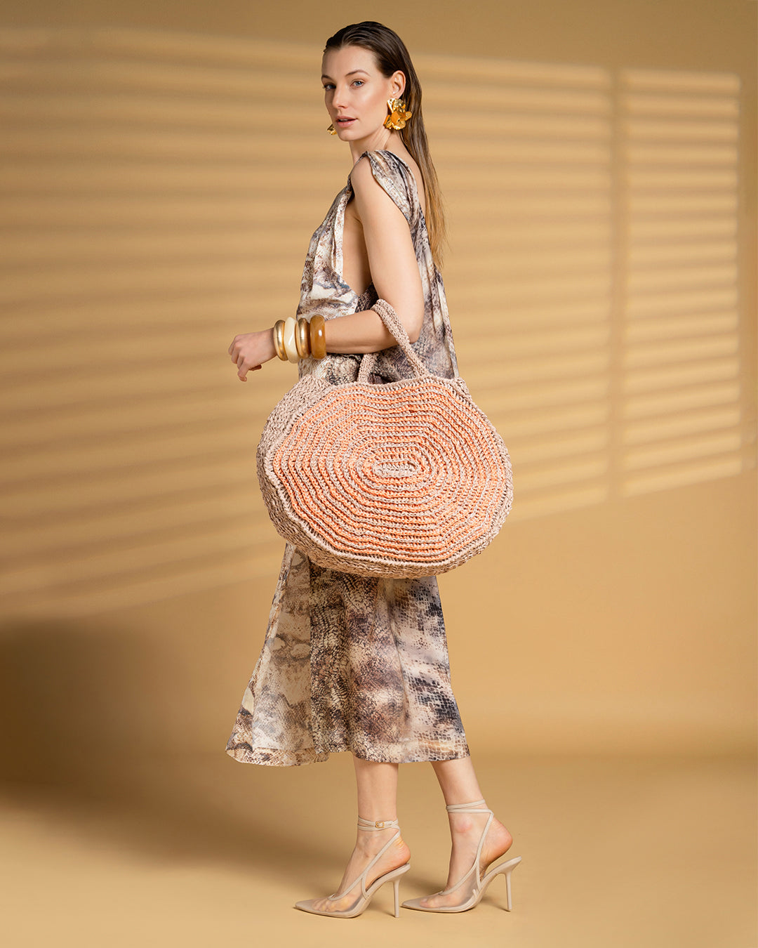 Giri concentrici costruiscono la nuova Summer Bag con il filato Panama di Miss Tricot Filati. La spiegazione è dettagliata giro per giro con i colori sabbia e salmone