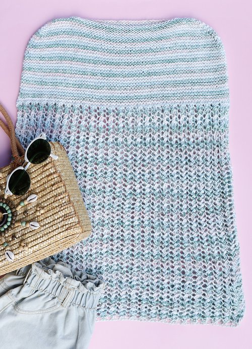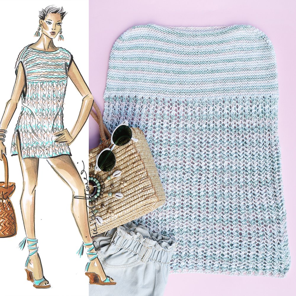 Tonalità pastello in degradè ed esclusivo punto rete rinnovano il copricostume passepartout con il filato Decapè color di Miss Tricot Filati