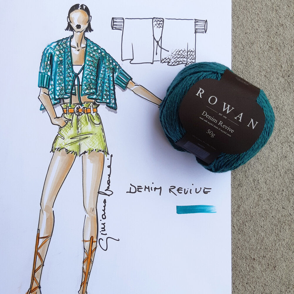 Cardigan con il filato ecosostenibile “Denim Revive” di Rowan a punto legaccio, dedicato a tutte le knitters alle prime armi, pensato per i giorni assolati di mare.