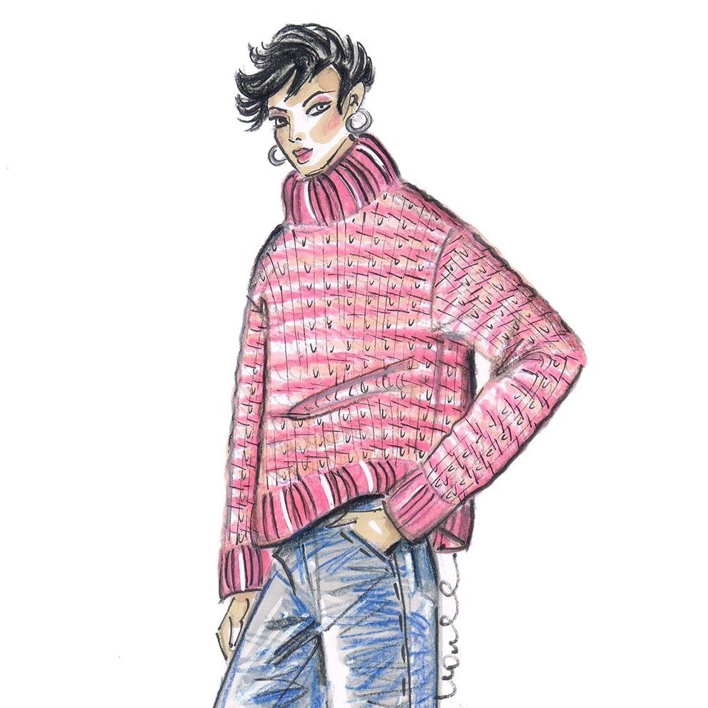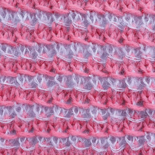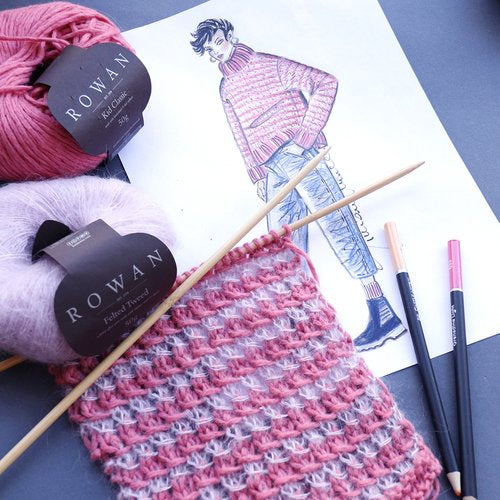 Un punto esclusivo per un mix di filati preziosi kid classsic e kid slik haze di ROWAn per il pull della prossima primavera soffice, caldo come un abbraccio di tenerezza declinato in rosa