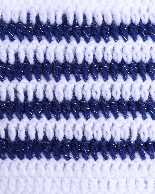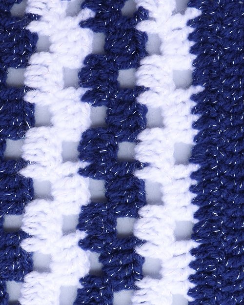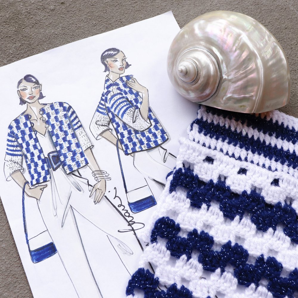 2 soli gomitoli di Van Gogh Lux di Miss Tricot Filati lavorati all’uncinetto per la nuova giacca di stagione con i colori classici marina.
