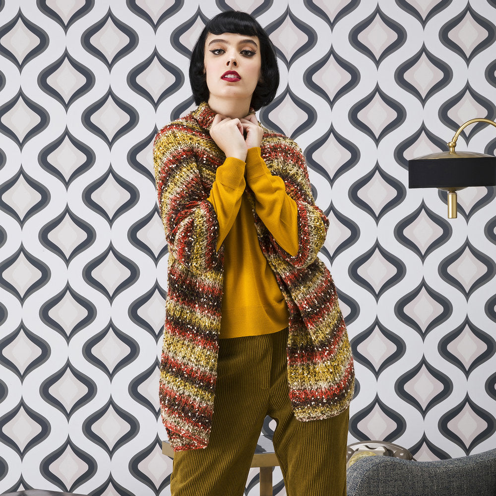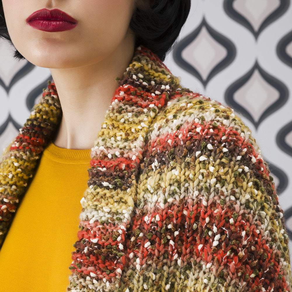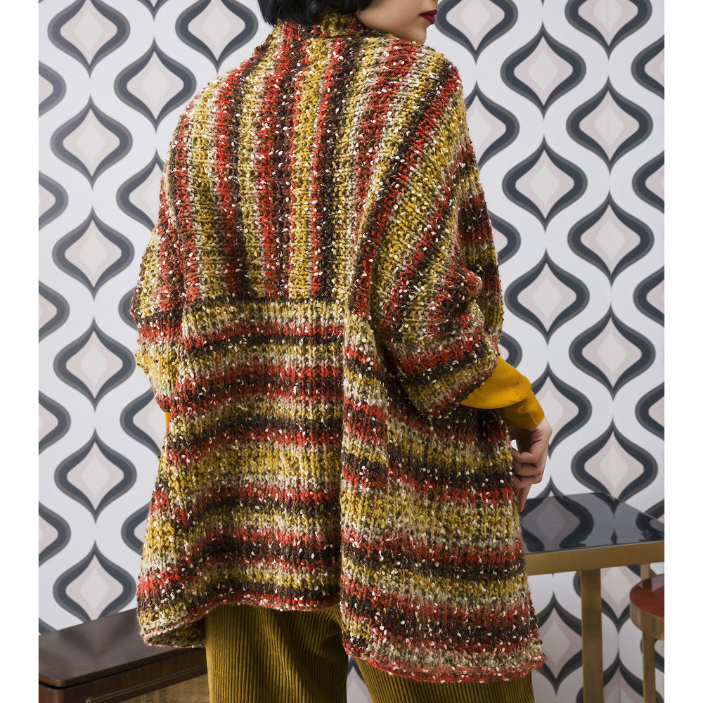 La “Giacca Bretone” si compone di rettangoli lavorati con un punto fantasia molto semplice incorniciati da un bordo a legaccio che da vita a un collo a scialle. E’ richiesta attenzione per l’assemblaggio dei moduli, che abbiamo illustrato per voi all’interno del pdf con le spiegazioni per aiutarvi nella confezione del modello. Il filato “Bretone” di Miss Tricot Filati, misto lana merino e acrilico, scelto da noi per questo modello, si caratterizza per un’interessante cromia che spazia nei toni dei boschi d’autunno tra verdi e ruggini, e che si abbina perfettamente con pantaloni in velluto a costa o di tweed. Potete indossarlo anche come soprabito.