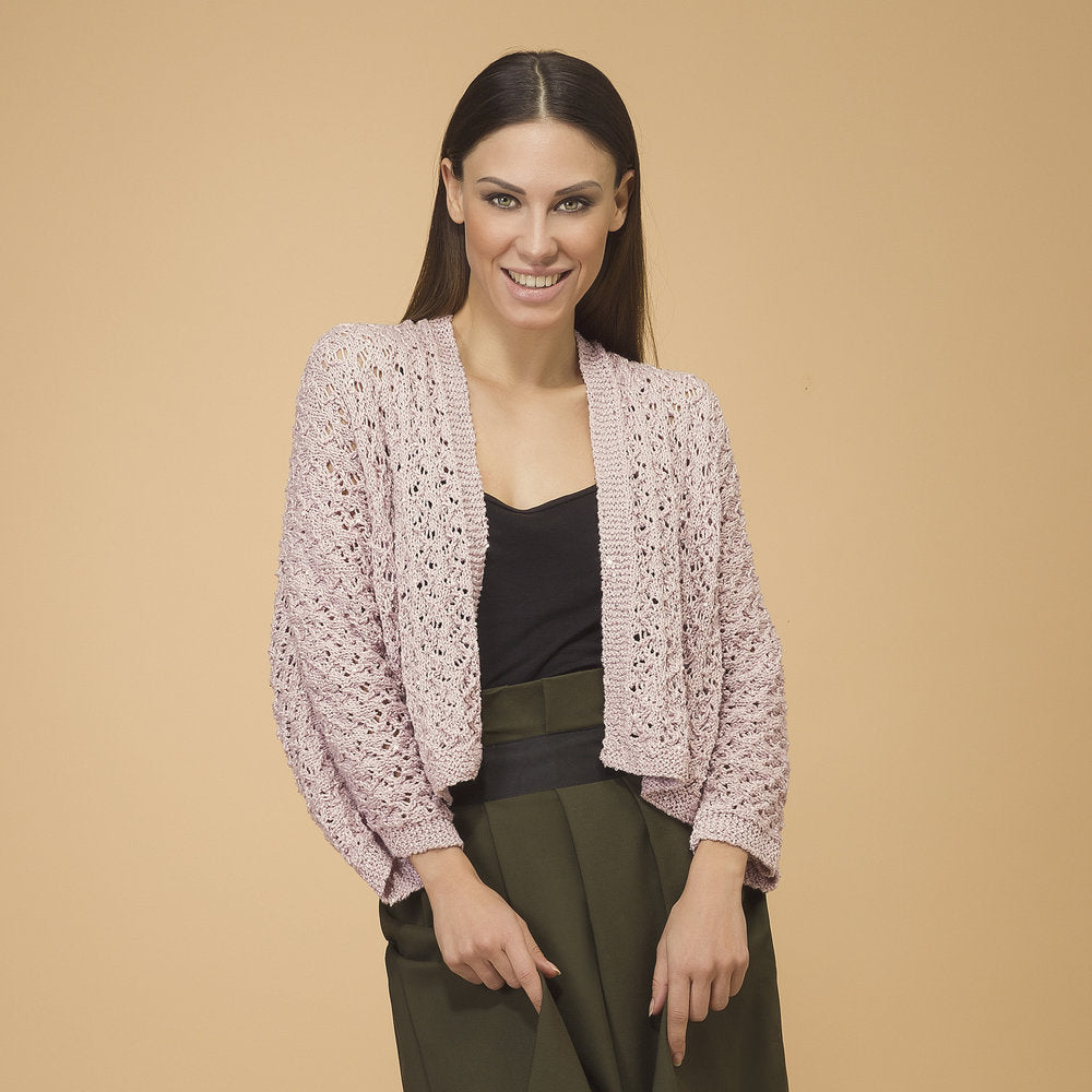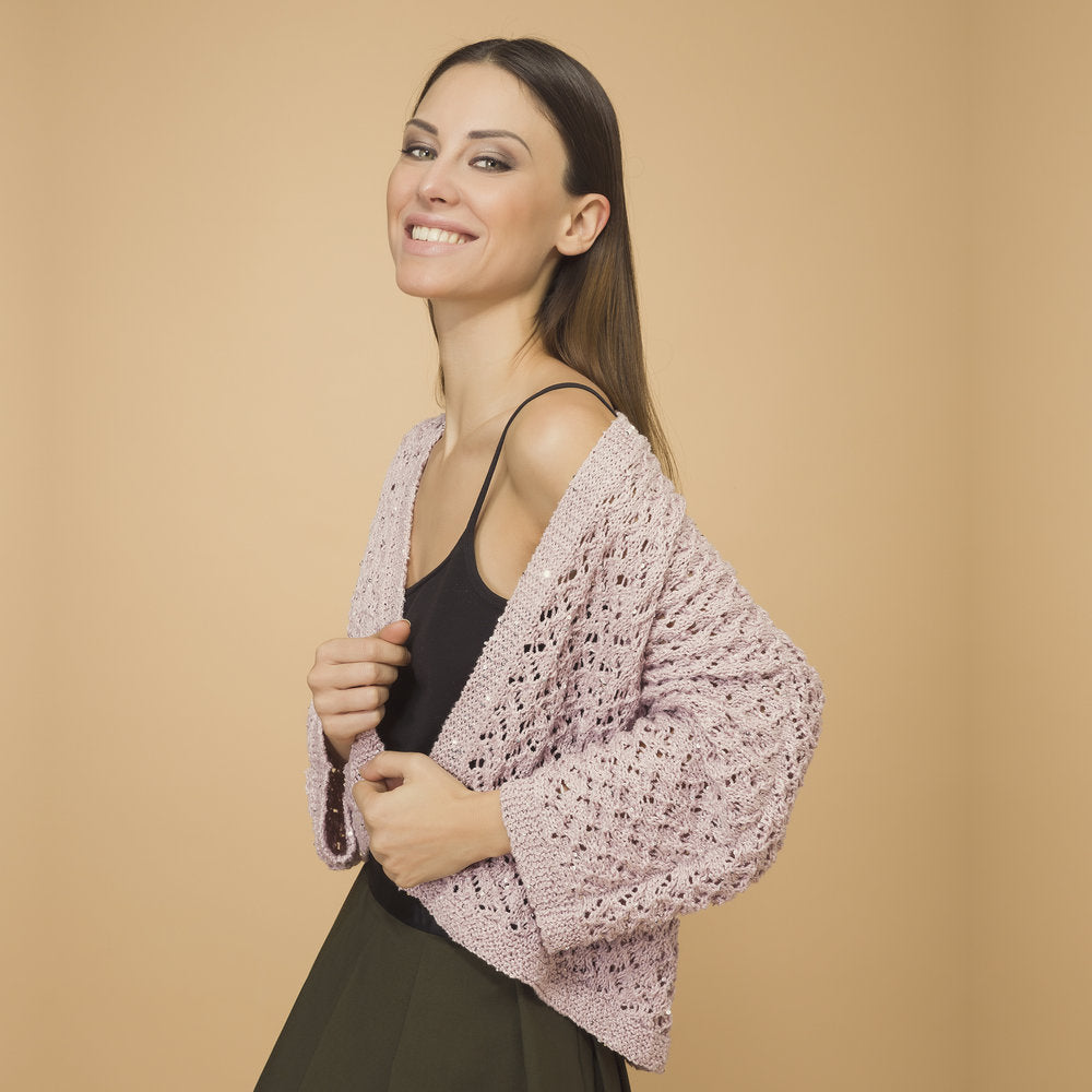 Elegante ed essenziale nella sua semplicità, la “Giacca Magic Sun” ha una vestibilità che si adatta perfettamente a qualsiasi forma del corpo e taglia, grazie alla sua forma a T. La lavorazione a zig zag incorniciata da bordi a maglia legaccio enfatizza e impreziosisce il nuovo filato di Miss Tricot Filati “Magic Sun”, arricchito da pailettes che rendono il modello luminoso e scintillante.