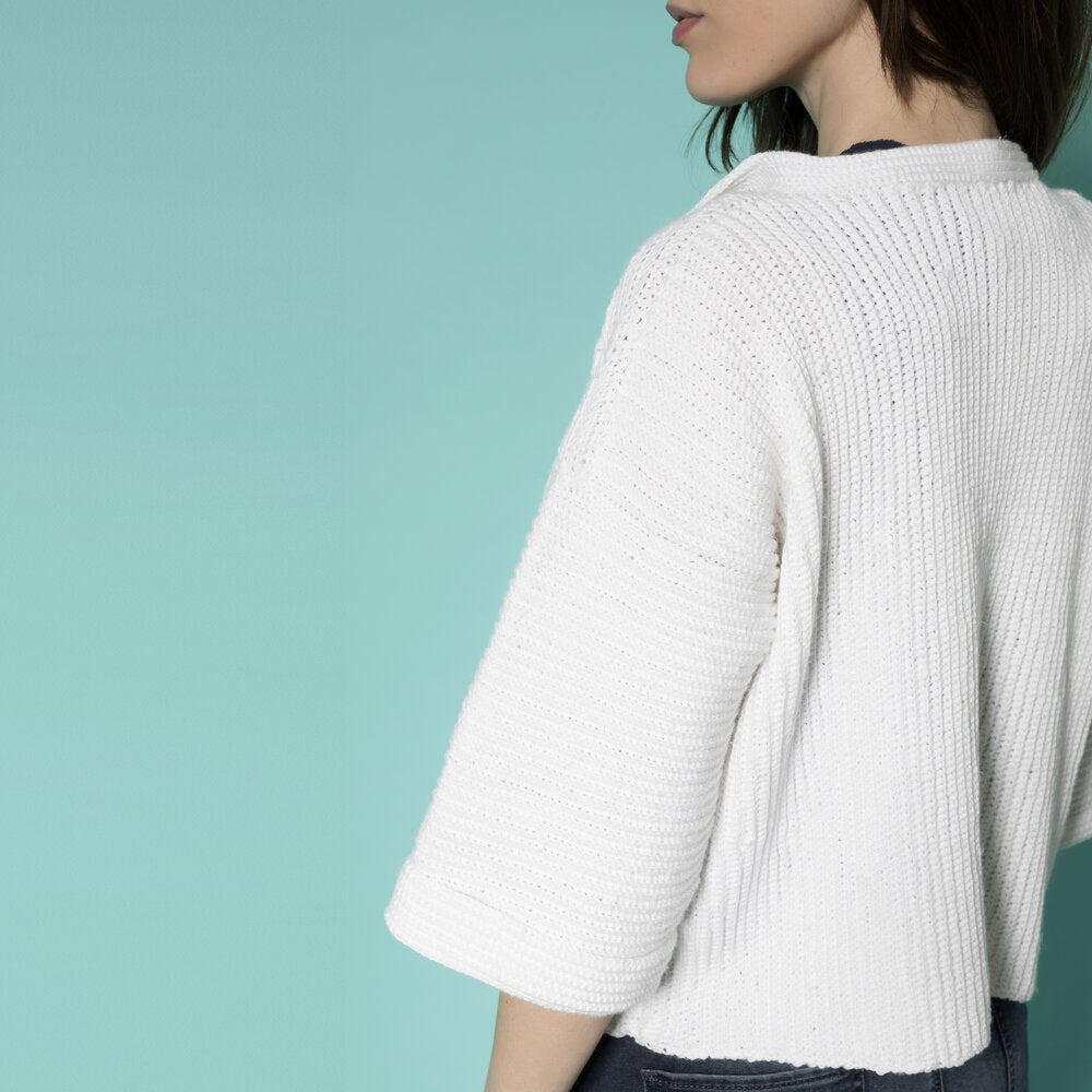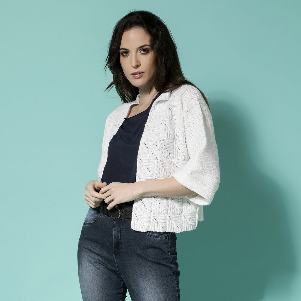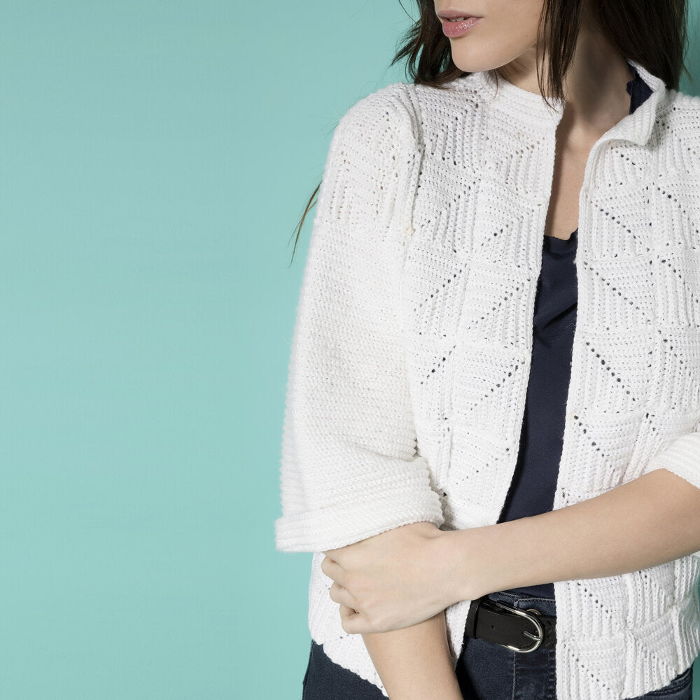 Intramontabile uncinetto bianco per la “Giacca Portofino” scolpita da moduli a maglia bassa presa in costa come un tessuto. All’interno del nostro pdf troverete spiegazioni dettagliate per realizzare questo modello dalla taglia 44 alla 54! Potrete realizzarlo sia in cotone per l’estate che in lana sottile per tutte le stagioni. Non fatevelo scappare, buon lavoro!