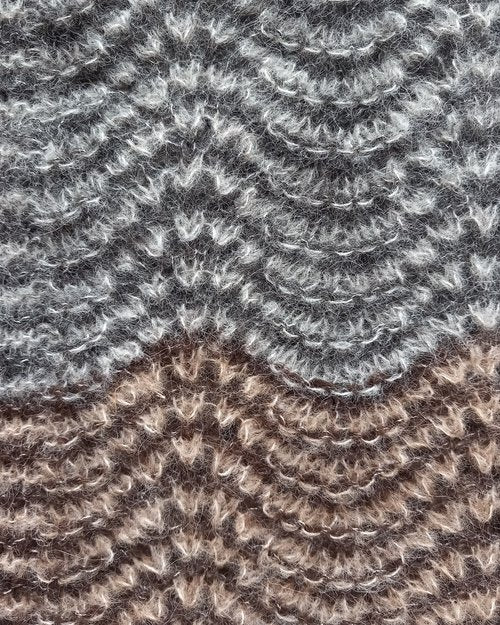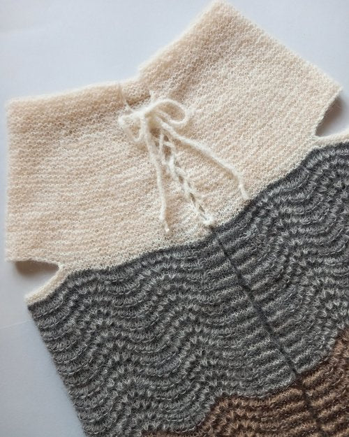 Alpaca/seta e soli colori naturali! Gilet con il classico punto pavone e un carré modellato in tondo a punto legaccio.