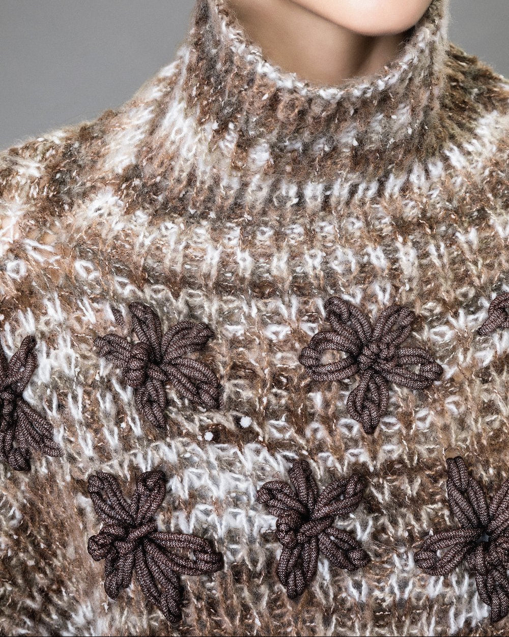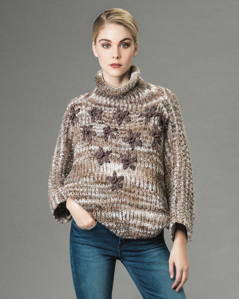 Il "Kimono Fantasy" è caratterizzato da una linea che propone nuovi volumi che abbia deciso di creare con il filato "Acchiappasogni" di Miss Tricot Filati. Soffice come una nuvola, ricco di piccoli fiocchi di neve è stato valorizzato dalla lavorazione a mezza costa inglese che ne enfatizza maggiormente la naturale leggerezza. Particolare dettaglio per chi conosce le basi del ricamo: decorazioni a punto margherita a impreziosire il carrè