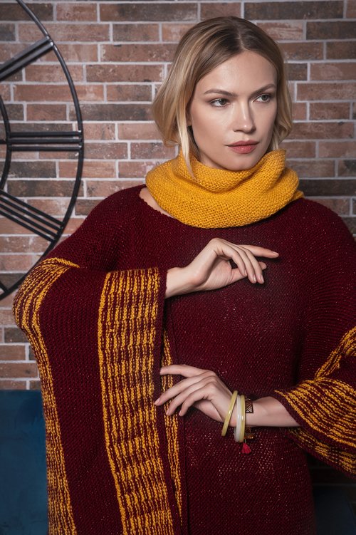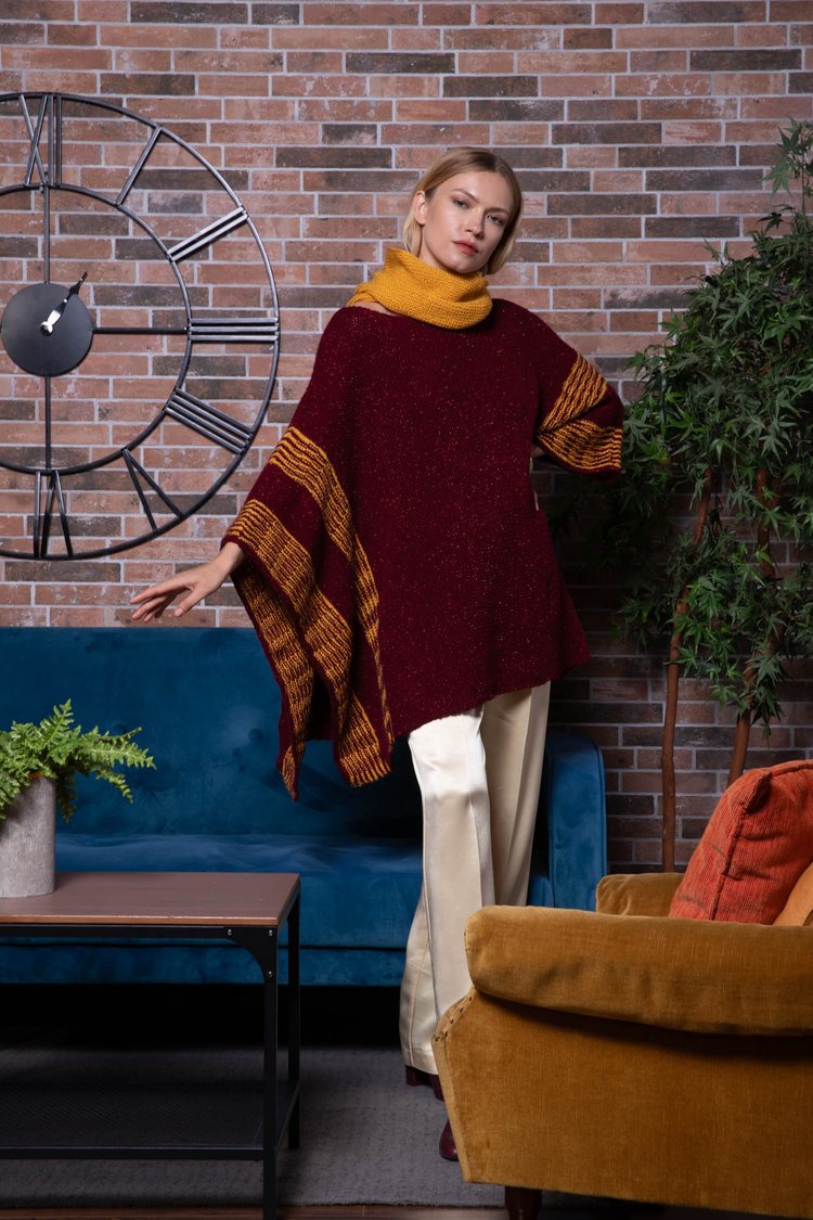 Per l’inverno vi proponiamo un esclusivo modello di mantella monomanica che abbiamo realizzato a punti semplici con i colori porpora e oro. Il filato è Van Gogh Lux di Miss Tricot Filati della nuova collezione.