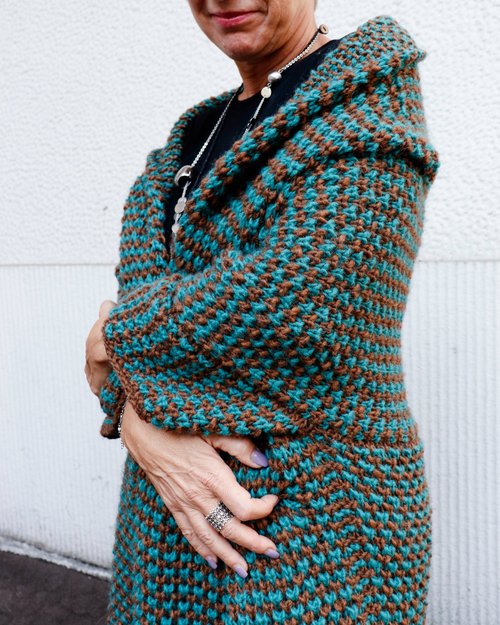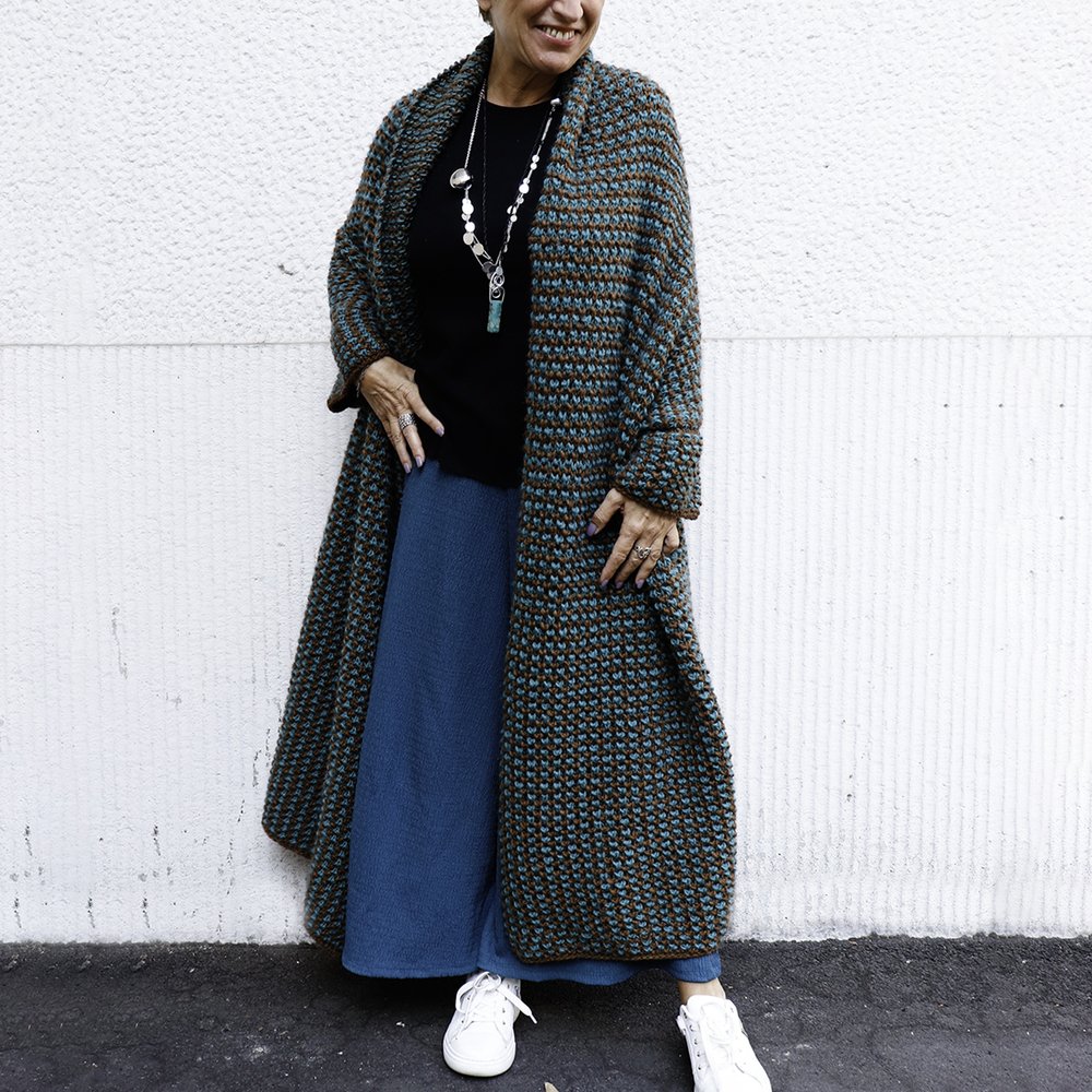 Il nostro cappotto modulo rivisitato con il filato Bunny di Sesia Tricot, morbido e avvolgente come una coccola nella sua costruzione a moduli