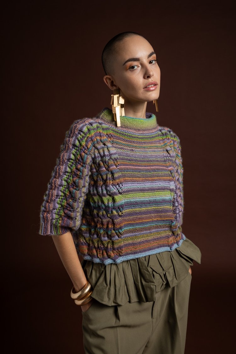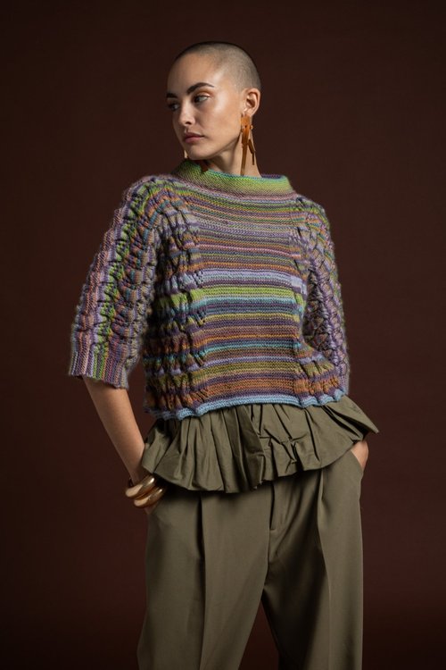 Finalmente on line il modello Globo di Miss Tricot Filati 100% lana mulesing free arcobaleno di colori e inediti punti intrecci e à-jour
