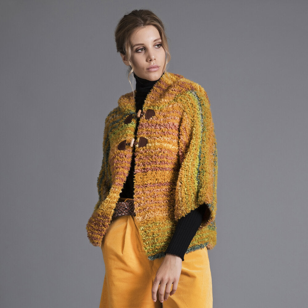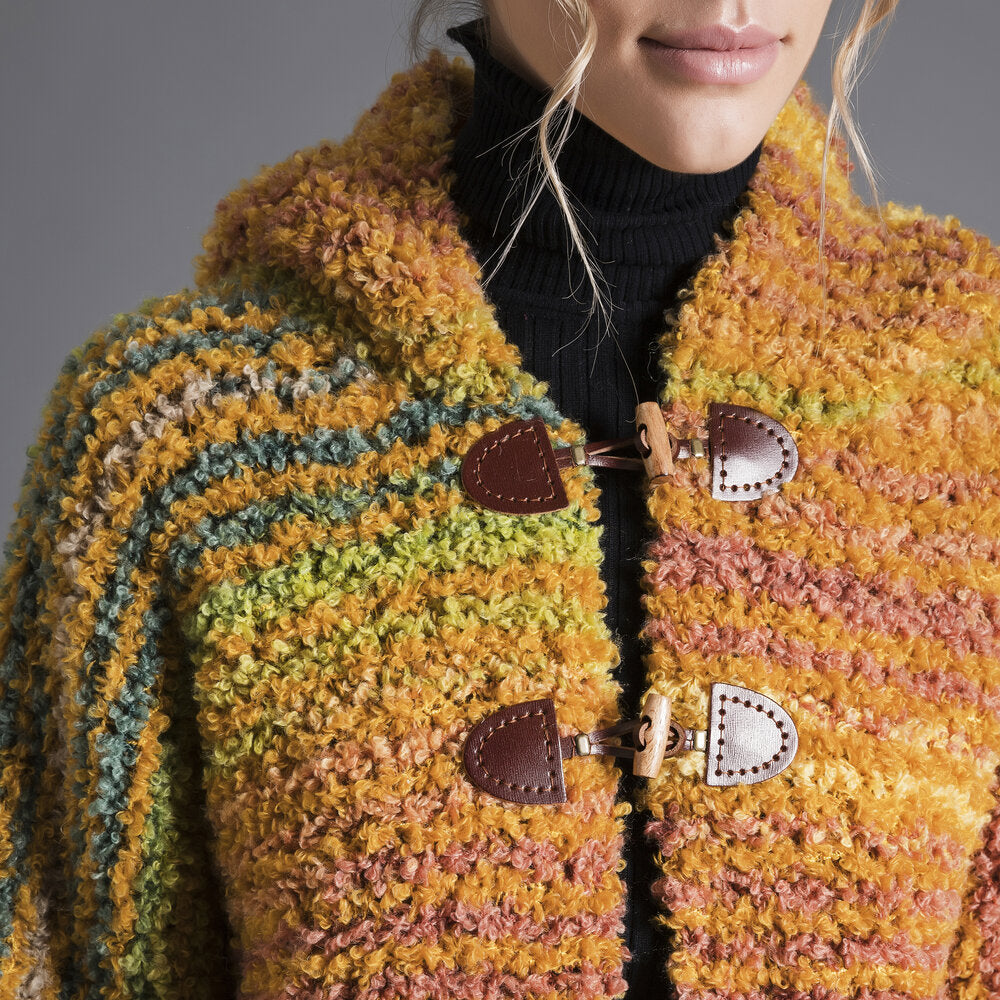 Tutti i colori dell’autunno racchiusi nel filato “Concerto Color” di Miss Tricot Filati, che abbiamo scelto per creare il nuovo montgomery 2020/2021 lavorato a maglia legaccio. La ricerca di una linea essenziale, che rende il capo veloce e facile da realizzare, unitamente all’originalità della stampa del filato, impreziosite da cappuccio e alamari, conferiscono a questo modello una certa particolarità, per outfit mai banali o scontati. Buon lavoro!