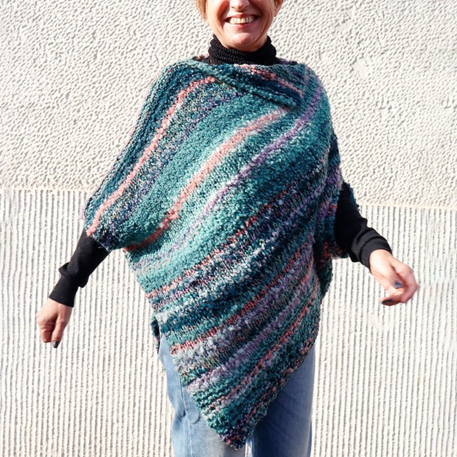 Facile da realizzare un poncho morbido e allegro per i primi freddi. Realizzato col Filato Funk di Katia Yarn & Fabrics