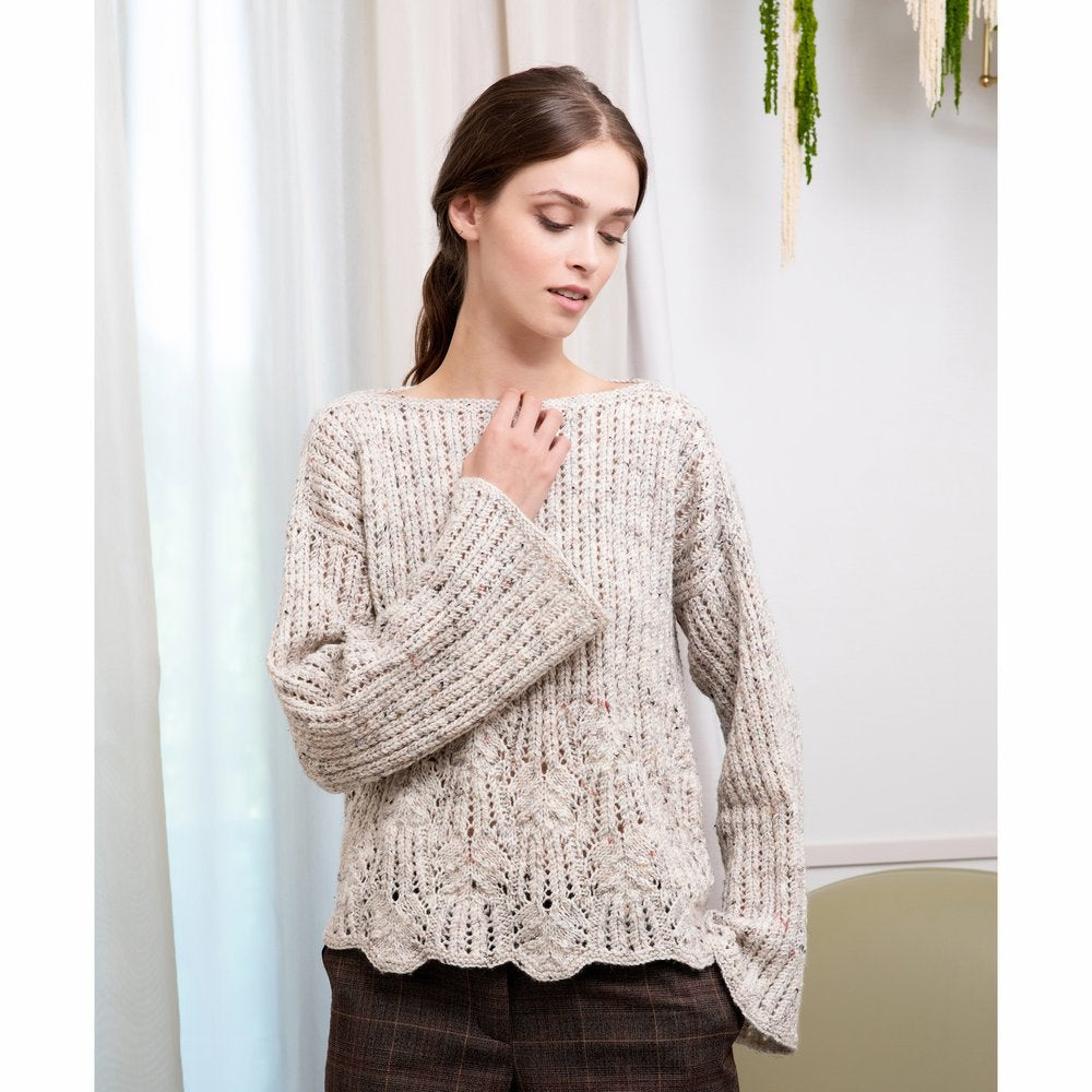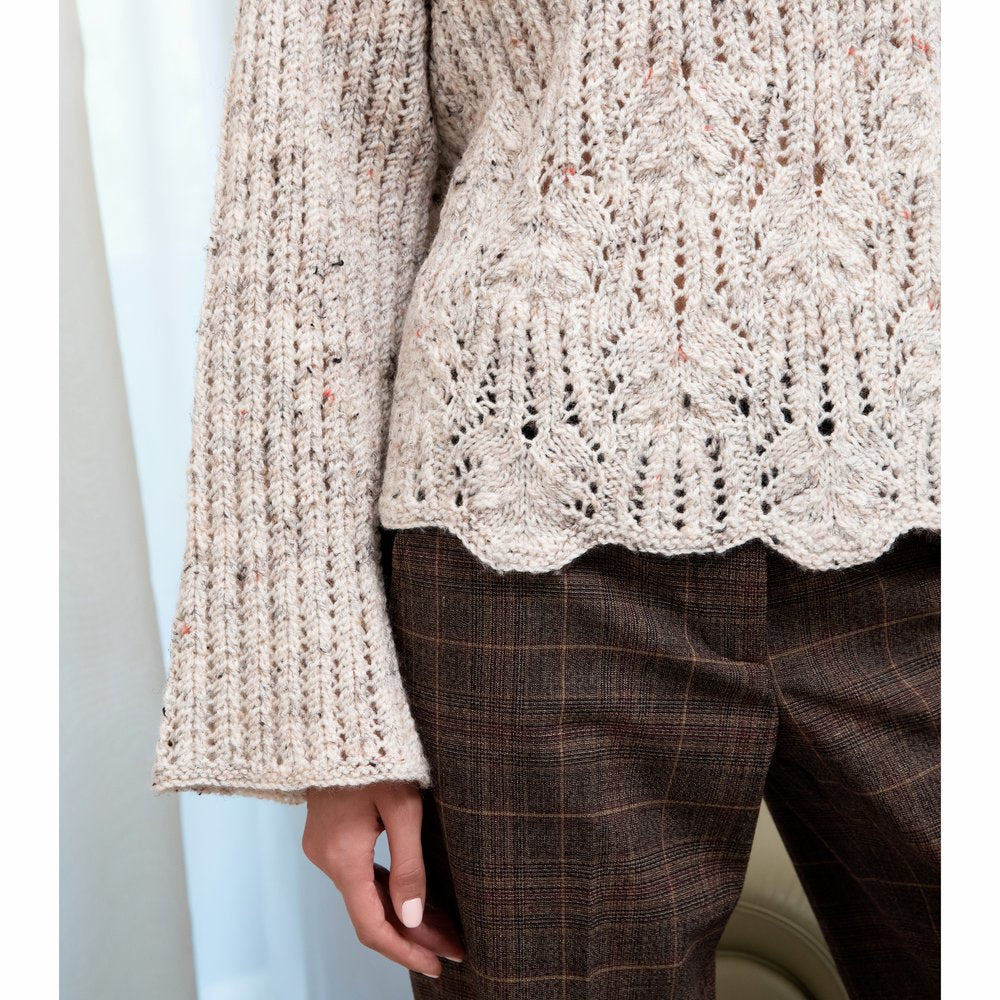 Per tutte le amanti dei punti preziosi un pull realizzato principalmente a punto fiori cardo con il filato ”Dalmata” di Miss Tricot Filati. La linea diritta facilita il lavoro e i punti ajour lo rendono leggero.