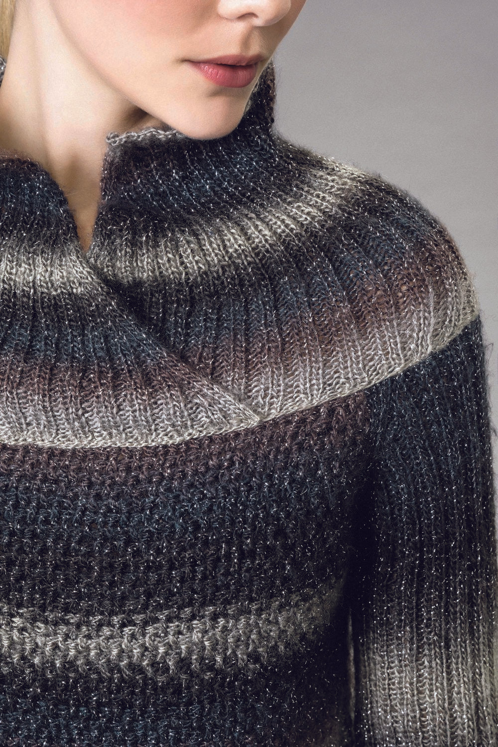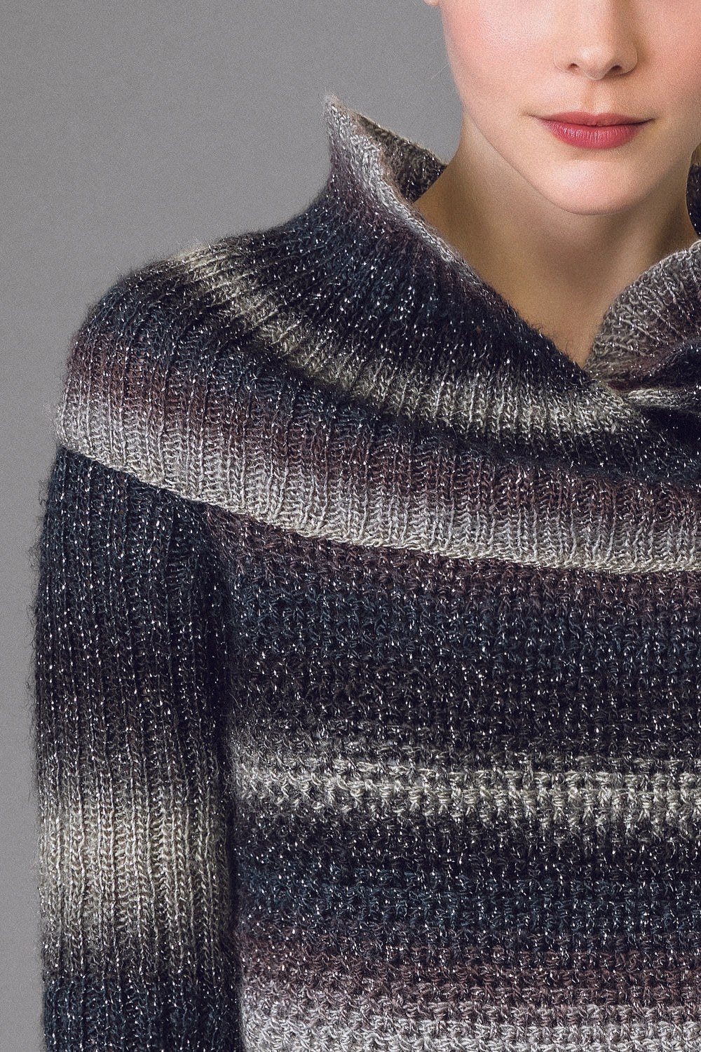 N.B. Qualora non trovassi il filato suggerito nell’occorrente puoi sostituirlo con un filato lamè, l’importante è scegliere un filo che si lavori con lo stesso numero di ferri da noi suggerito, controllando, dopo aver eseguito il campione di 10×10 cm, che il numero di maglie e dei ferri corrispondano al nostro originale.