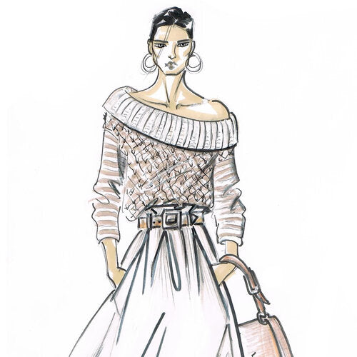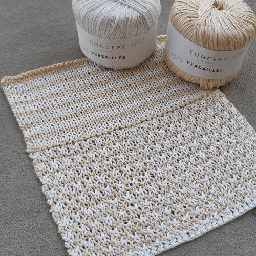 Sabbia e bianco nostalgia di spiagge e conchiglie con bagliori improvvisi valorizzati dal punto nido d’ape nel filato “Versailles” di Katia Yarns & Fabrics. Costruzione dalla linea essenziale con una scollatura che impreziosisce il modello mantenendo una elegante semplicità. Scoprite tutta la cartella colori disponibile per il filato “Versailles” e lasciatevi ispirare! Buon lavoro knitters!