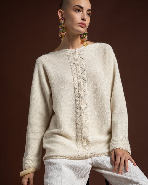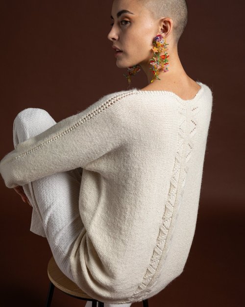 La tunica della collezione “Linea Top” realizzata con il filato di Miss Tricot Filati, dallo stile semplice ed elegante ma ricca di dettagli che impreziosiscono il capo. Con una modellazione a kimono