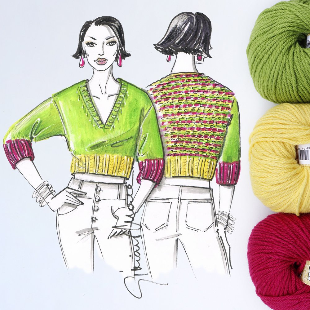 colori fluo a contrasto con nuove proporzioni per il mini pull crazy facile e veloce con soli 4 gomitoli di filato “morbidoso” di miss tricot filati
